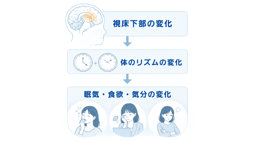 視床下部を含む複数の調節系が関与する現象である点には注意が必要です。